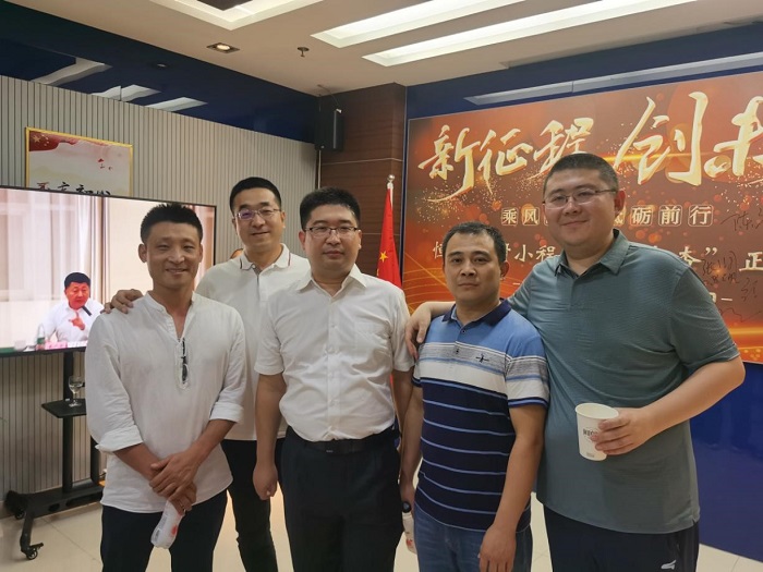 国富投资集团党委常委、副总经理、恒银公司党支部书记马国栋同志受邀出席启动仪式并向小程序主创人员鲁炎同志颁授“特殊贡献奖”奖牌和5000元特殊贡献奖金。公司董事长李刚同志、总经理王军同志及全体班子成员在轻松愉悦的气氛中全程参加了启动仪式,与总部员工合影留念并进行现场互动。