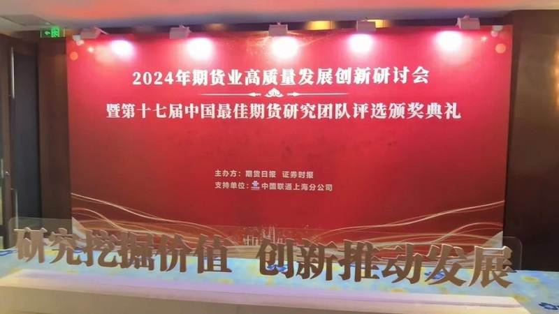 2024年11月27日上午,期货日报社联合证券时报社共同主办的“2024年期货业高质量发展创新研讨会暨第十七届中国最佳期货研究团队评选颁奖典礼”在南京举行。