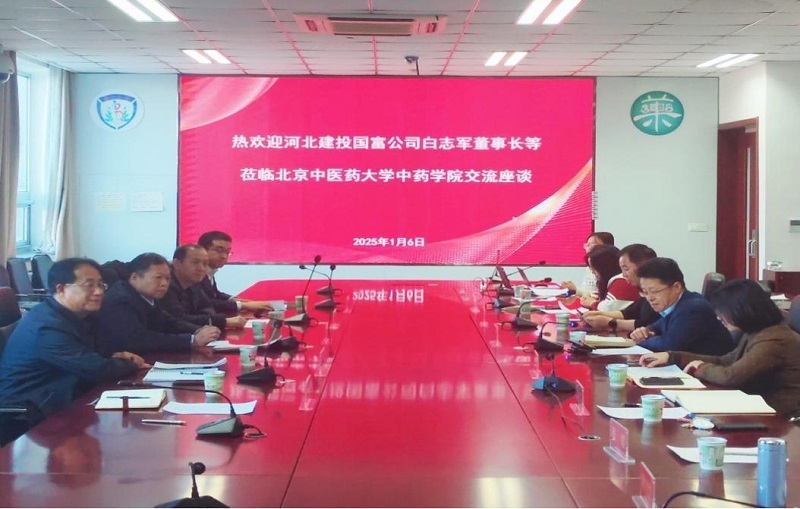 1月6日,国富公司党委书记、董事长白志军带队赴北京中医药大学中药学院调研,就河北省中药材交易平台运营相关工作开展座谈交流。北京中医药大学中药学院院长雷海民、副院长魏胜利、中国中药协会精准中药专委会秘书长解海兰及院内相关工程师、教授、研究员和博士研究生出席会议。国富公司党委副书记、副董事长、总经理张立忠,国富公司党委委员、副总经理李其强,恒银期货公司总经理汤志江、建投中药材公司副总经理祁麟参加座谈。