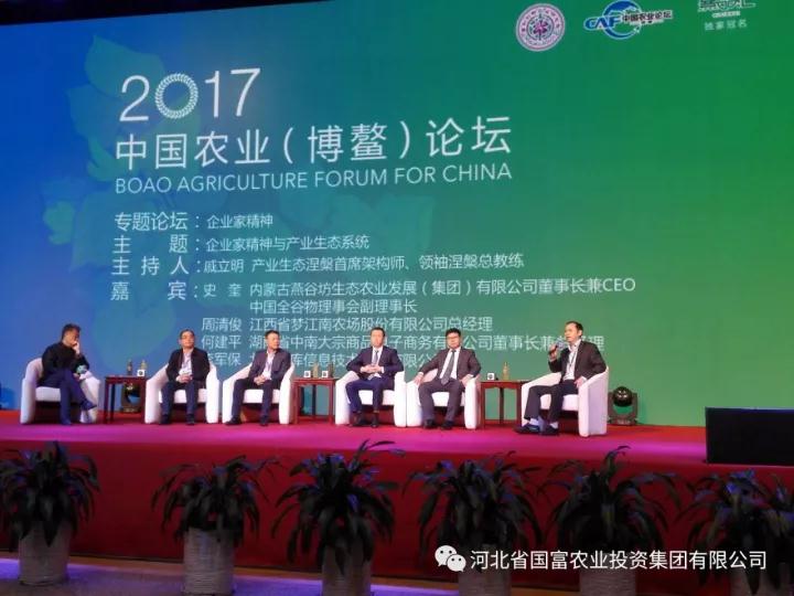 2017中国农业(博鳌)论坛以“站在世界前沿,心怀天下民生;聚焦科技发展,谱写新农故事;分享成功经验,弘扬农耕文化;凝聚人类精华,共创三农新貌”为宗旨,生态、智能与共享三大篇章融合了本次中国农业(博鳌)论坛的精髓,其中得到的农业商业模式、国内外农业发展经验等将会对国富投资集团未来发展带给更多启示。