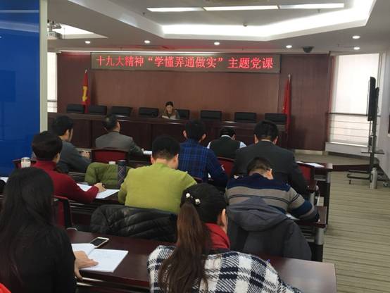 12月22日下午,国富投资集团组织全体党员干部在18楼会议室开展了《十九大精神\"学懂弄通做实\"主题党课》活动。集团公司第二党支部书记石景、第一党支部支委曹立平分别进行了授课。他们生动活泼、贴近实际的讲课内容受到了大家的好评。
