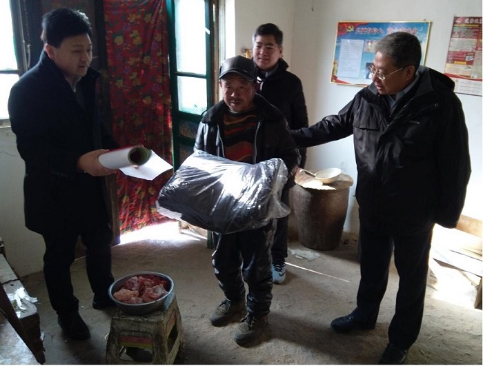 2020年1月8日,国富投资集团党委副书记韩继普、副总经理邸智彬带领党员志愿者,驱车两个多小时,来到保定市唐县北店头乡西同龙村,开展春节前夕送温暖活动,将暖暖情谊和深深祝福送给贫困户。