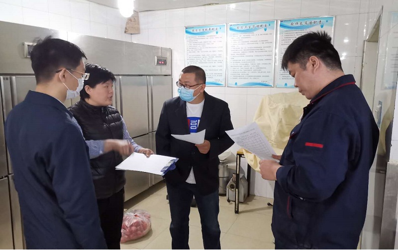 在检查中指出,要高度重视食堂安全生产工作,尤其是在疫情期间做好安全防控工作。一是全面贯彻落实食堂场所安全生产专项检查行动的各项要求,全面进行排查,不留死角、不留一丝隐患。二是要持续做好疫情期间人员就餐的体温登记工作和日常的消杀工作。三是要加强日常管理,确保食材安全,操作规范。