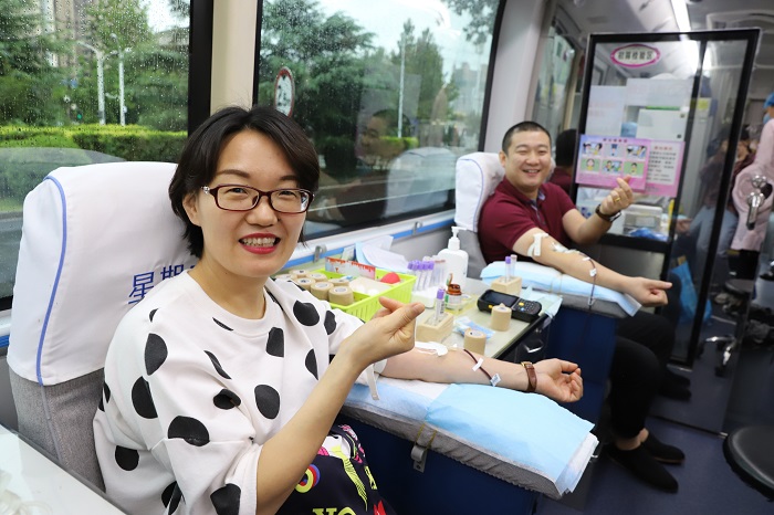 “河青号”爱心献血车是河北青年报社与河北省血液中心共建的一辆流动爱心献血车,可以现场安全采集全血。上午9:30,国富投资集团18名员工走上“河青号”献血车,他们纷纷撸起袖子,排队、化验,等待奉献爱心。“回去后多喝水,我叫食堂给大家炖肉吃!”国富投资集团党委副书记韩继普给大家鼓劲儿。